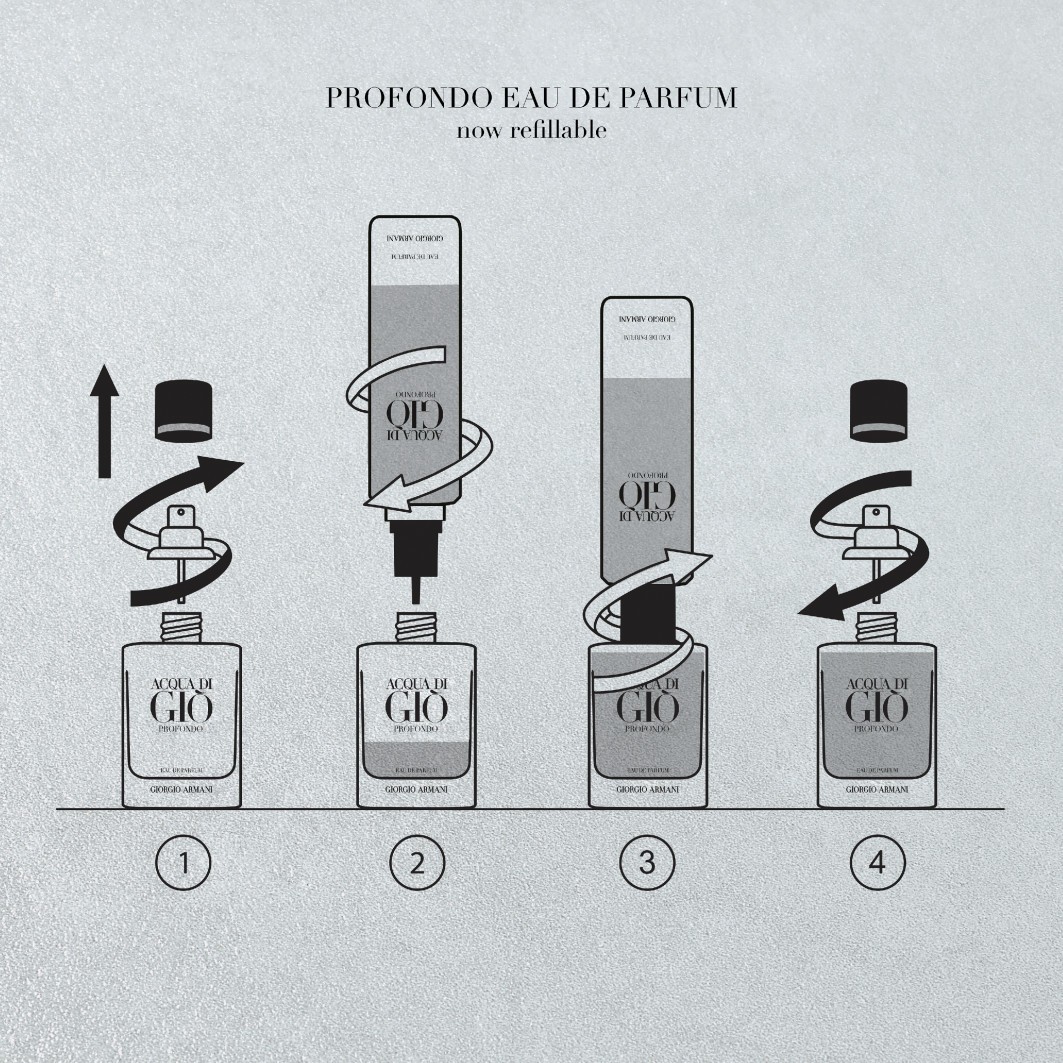 Acqua Di Giò Profondo è una creazione fresca e acquatica, che incarna le sfaccettature dell'oceano. Il profumo è ispirato a un tuffo nel mare, con note di mandarina verde, lavanda, rosmarino e legno di cedro, accompagnato da una base di patchouli e muschio.